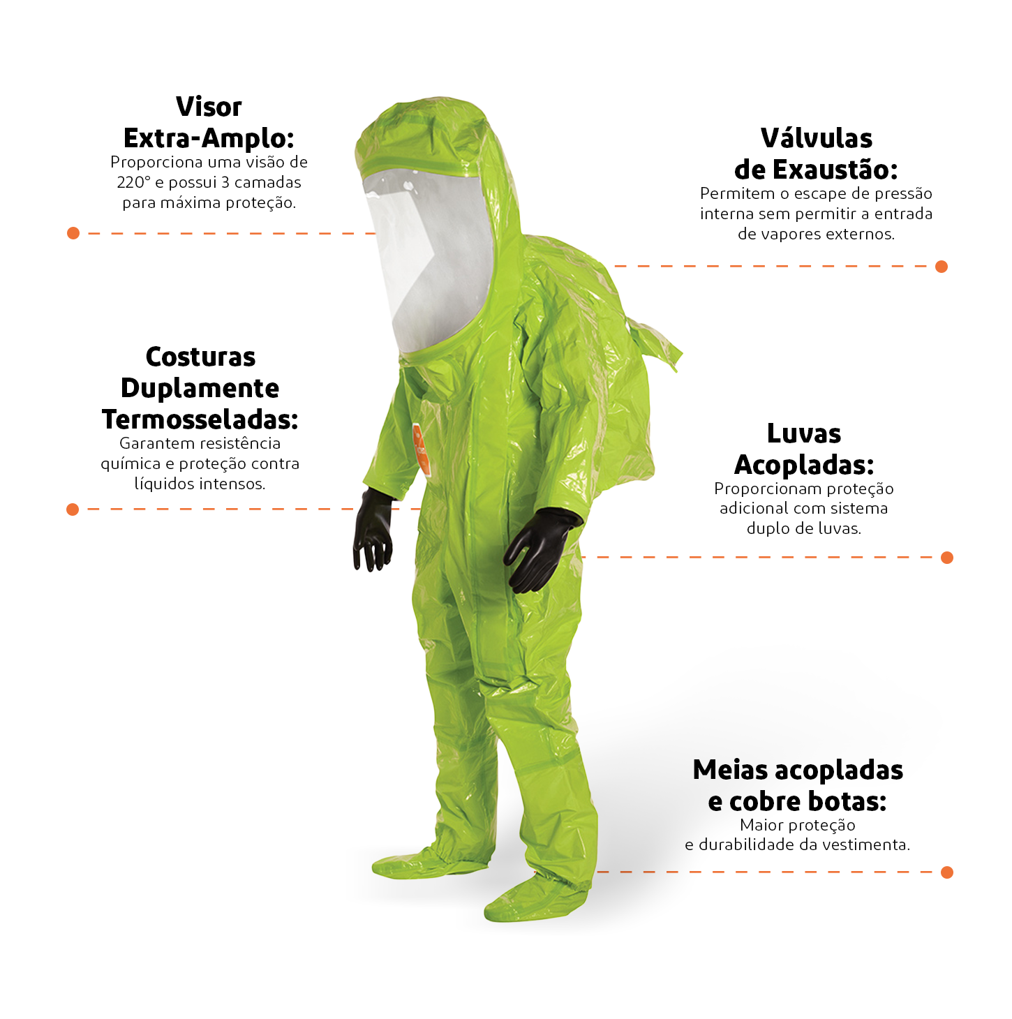 O traje encapsulado Nível A DuPont™ Tychem® 10000 é um dos melhores equipamentos de proteção disponíveis no mercado, oferecendo uma excelente barreira contra diversos agentes químicos.