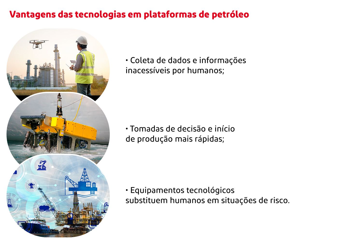 Graças ao avanço e desenvolvimento da tecnologia nas plataformas de exploração e produção de petróleo, parte da mão de obra humana em funções arriscadas, foi substituída por drones e robôs submarinos.