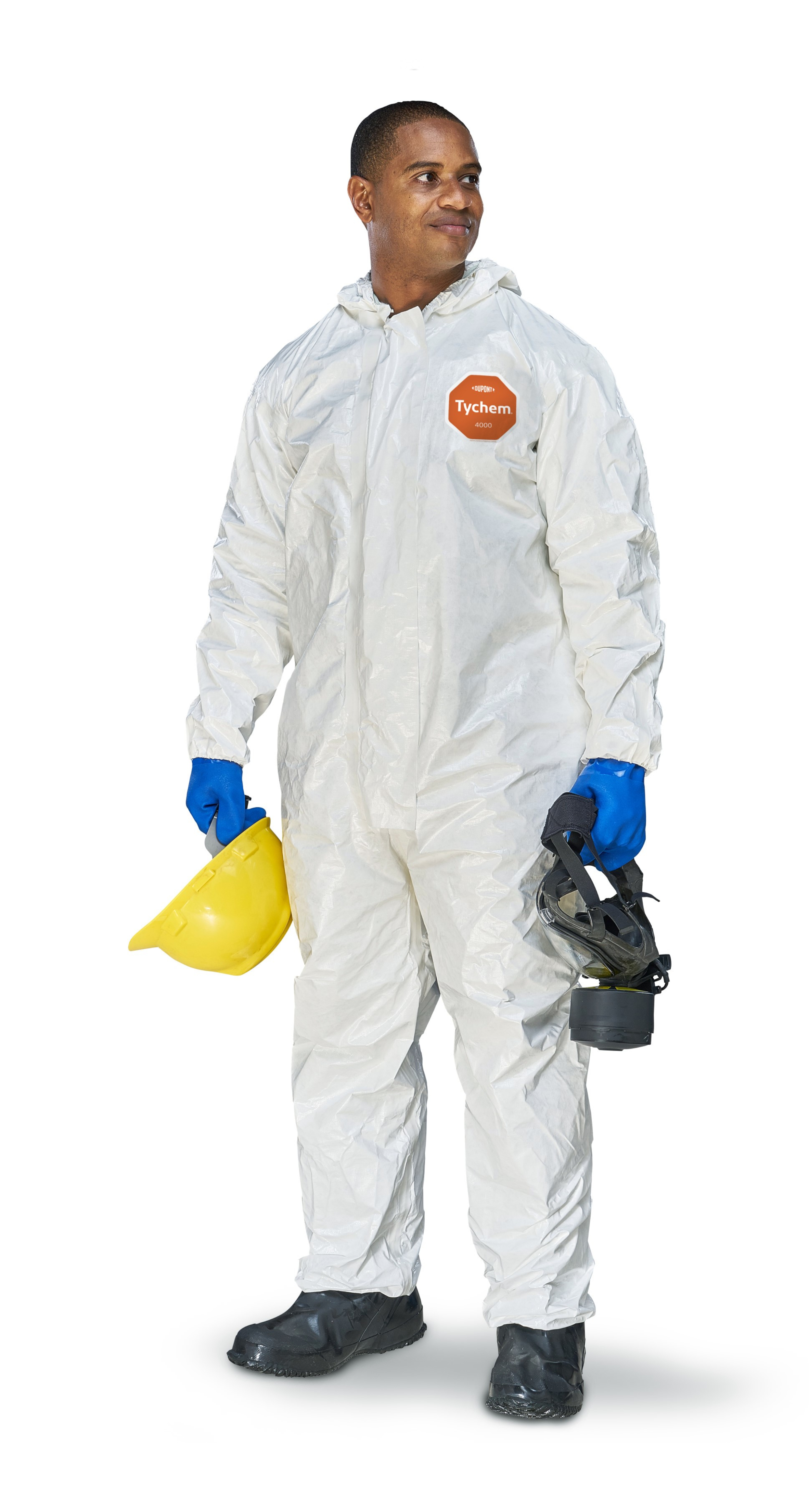 DuPont™ Tychem® 4000 oferece proteção efetiva contra um ampla gama de ameaças químicas. Tychem® 4000 utiliza Saranex™ 23-P filme laminado em Tyvek® para proporcionar um tecido durável e resistente à abrasão. Tychem® 4000 proporciona pelo menos 30 minutos de proteção contra mais de 124 ameaças químicas. Entre suas aplicações típicas estão: misturas químicas, remediações perigosas, respostas de emergências médicas, pinturas por pulverização e ambientes nucleares.