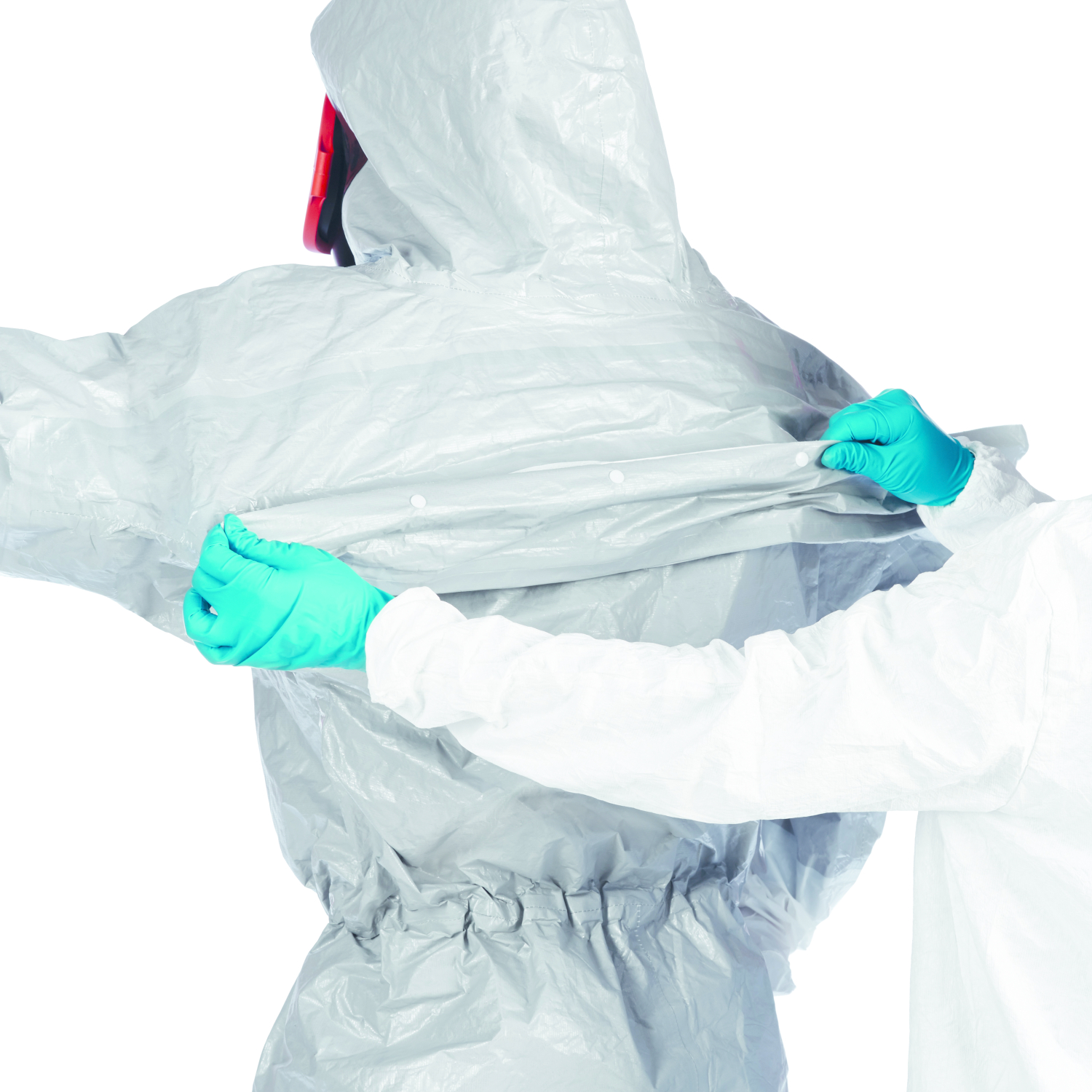"O tecido Tychem® 6000 F é um tecido leve e durável, consistindo de um filme de barreira patenteado, laminado em um substrato Tyvek®. Ele oferece excelente resistência à permeação química para uma ampla gama de produtos químicos, ajudando a proteger trabalhadores contra inúmeros produtos químicos orgânicos industriais tóxicos, produtos químicos inorgânicos altamente concentrados (mesmo sob pressão), partículas, riscos biológicos e certos agentes de guerra química. Tychem® 6000 F Faceseal pode ser usado para uma ampla gama de aplicações, desde manufatura e limpeza industrial, resposta a emergências, limpeza de derramamento de produtos químicos até aplicações militares e petroquímicas."